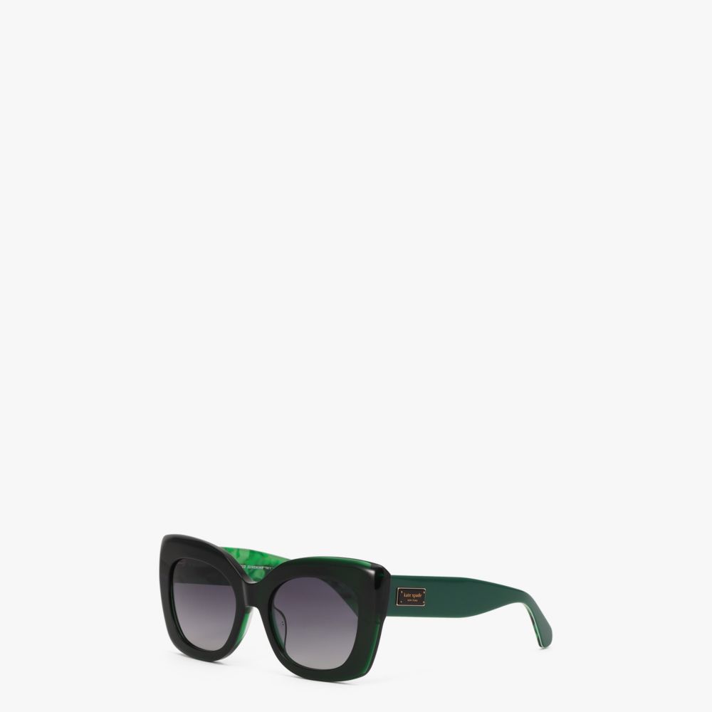大ぶりなバタフライシェイプのアセテートフレームに太めのテンプルを合わせた「カリー」。一点投入でスタイリッシュな印象をぐっと高める(そして陽射しからの保護にも活躍する)夏の必需品。