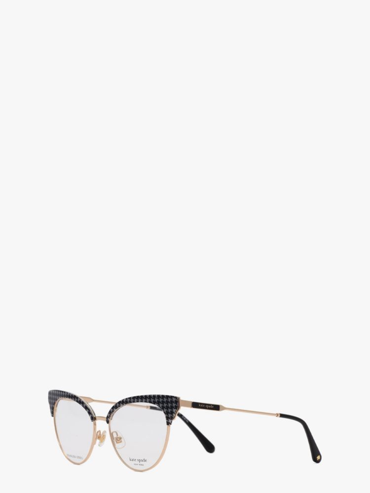 華奢なフレームにキャッツアイシルエットが映える、シックなアイウエア。フレーム上のみにあしらったチェック柄のアクセントが顔まわりをすっきりと引き締め、エレガントな印象を与えます。