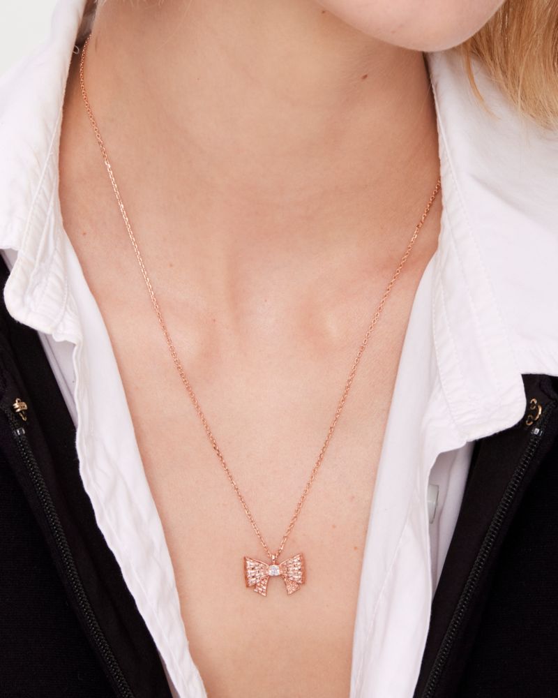 装いの仕上げには、この愛らしいリボンを胸元に添えて。表面に巧みなテクスチャーを施し、シックな煌めきを演出。中央には煌めくストーンを一粒セッティングしました。オフィスからデートまで、あらゆるシーンで愛用できるパーフェクトなミニペンダントです。