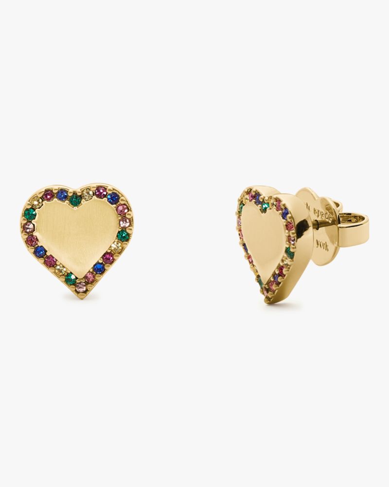 胸がときめいたら手に入れて:ハートシェイプのモチーフに色彩溢れるクリスタルをセッティングしたスタッズピアス。耳元で夢にあふれる煌めきを放ちます。さらに:こちらのアイテムは、ギフトに最適なプレゼンテーションボックス入りです。