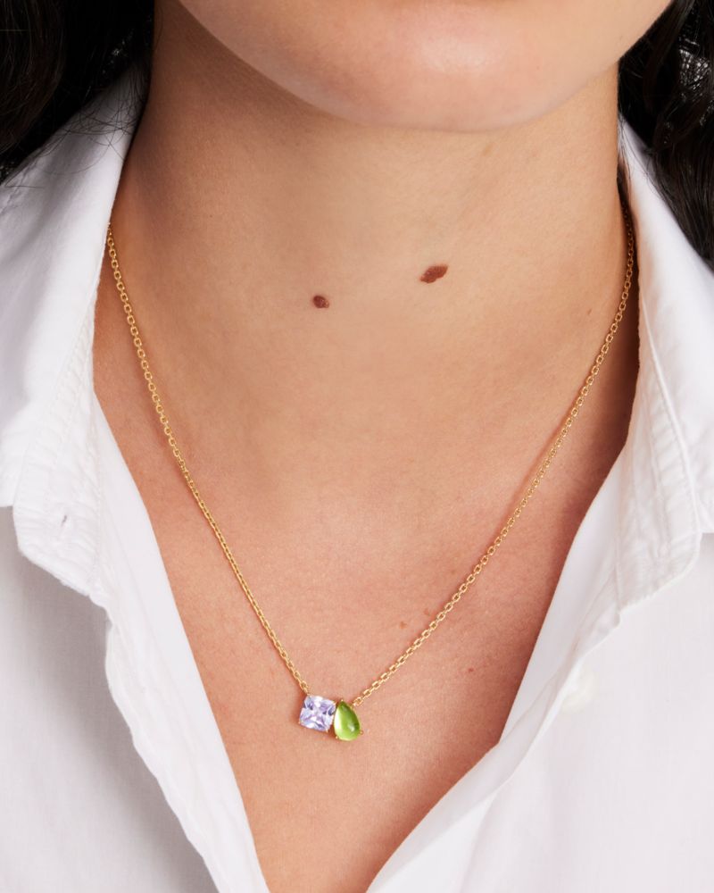 ショウタイム!さあ、周囲の視線を独占する準備をはじめて。表情の異なるクリスタルをトワ エ モワ デザインであしらったペンダント。その美しい色味とシェイプが引き立つように巧みなバランスでストーンをセッティングしています。