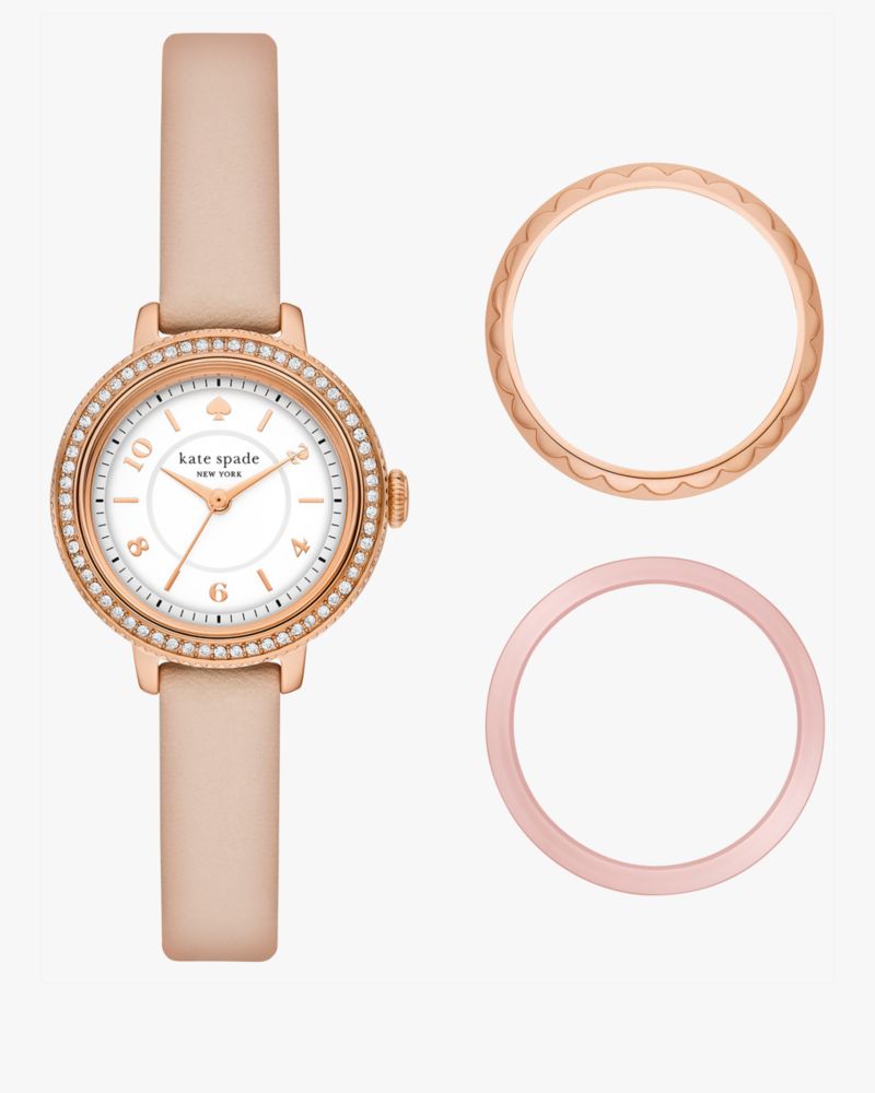 Kate Spade,モーニングサイド ピンク レザー ウォッチ & ケース セット,SALE Hidden,ピンク