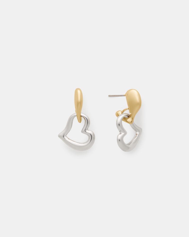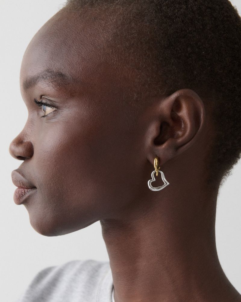 ハートの甘さを引き算し、気負わずに日々愛用できるルックに仕上げた、ゴールド×シルバーのコンビネーションカラーのアムール ドロップ ピアス。艶めきが顔まわりを明るく照らし、愛に溢れるスピリットを賛美します。普遍的なシンボルは、自分自身へのお守りや大切な人への贈り物としても最適です。