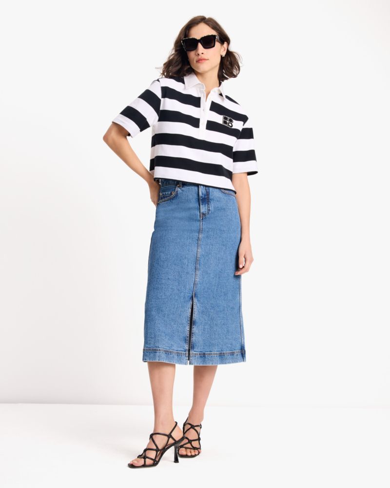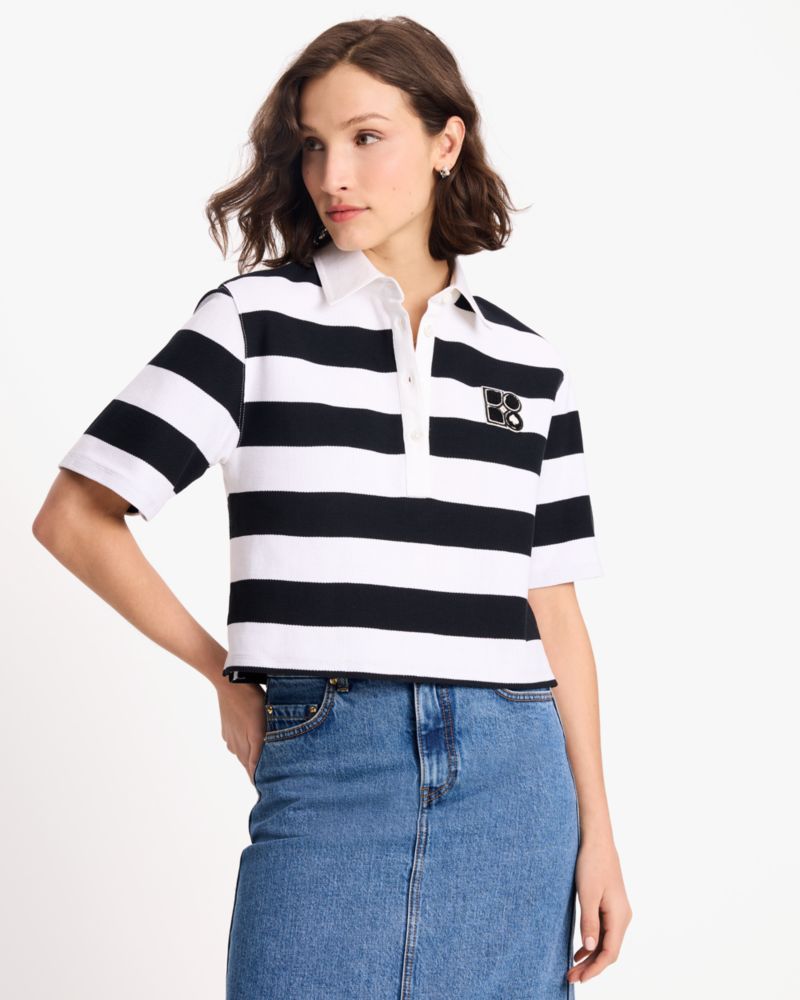 ラグビーシャツを着想に、アイコニックなノエルロゴをあしらい仕上げたTシャツ。カジュアルになりすぎない襟のデザインや、着こなしやすいドロップショルダーなど、デイリーに取り入れやすい1枚になっています。