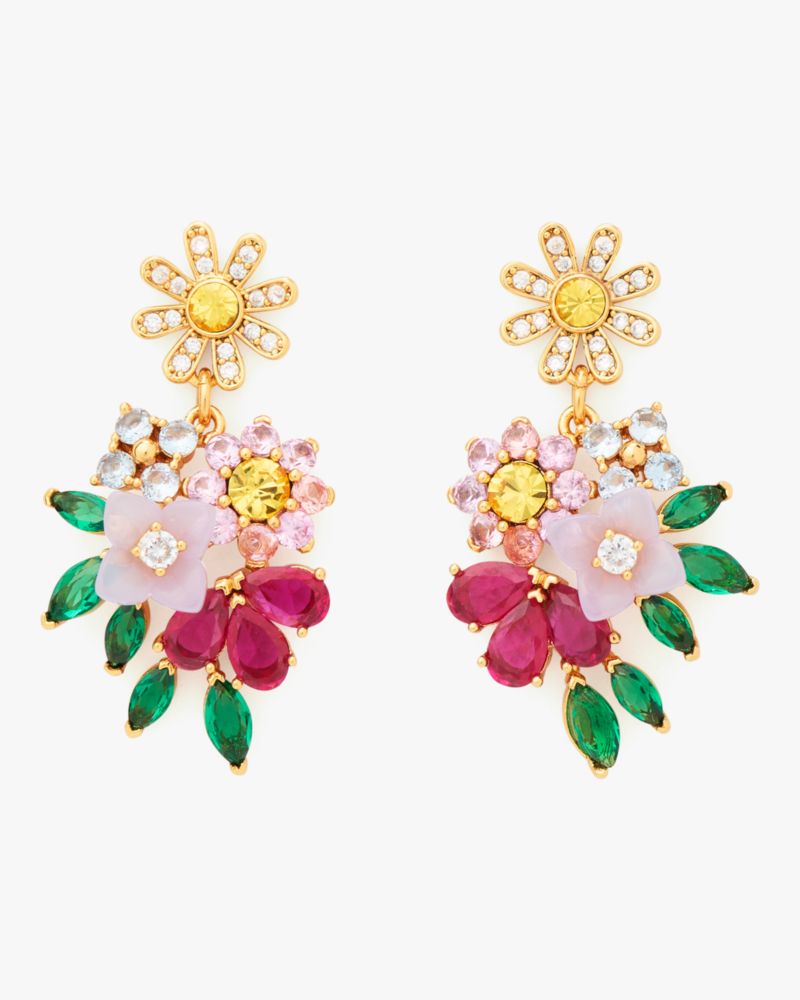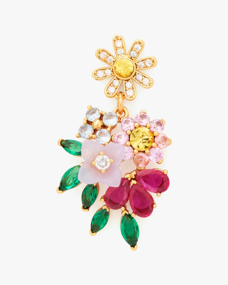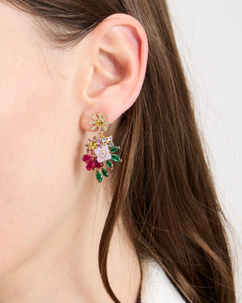 生き生きと咲き誇る花にインスピレーションを得て、豊かな自然へのオマージュとして誕生したピアス。煌めくクリスタルを飾った花々が耳元をエレガントに演出します。