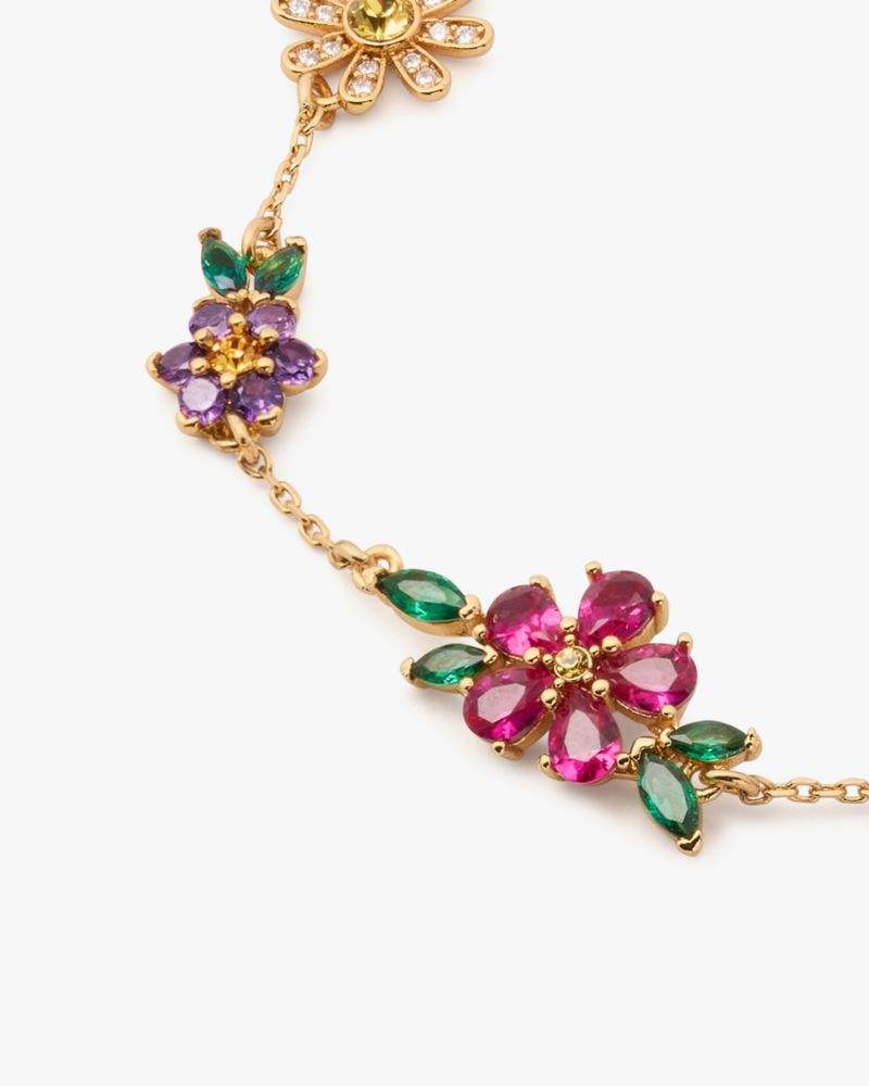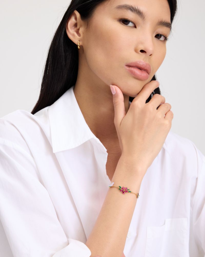 生き生きと咲き誇る花にインスピレーションを得て、豊かな自然へのオマージュとして誕生したブレスレット。煌めくクリスタルを飾った花々が手元をエレガントに演出します。