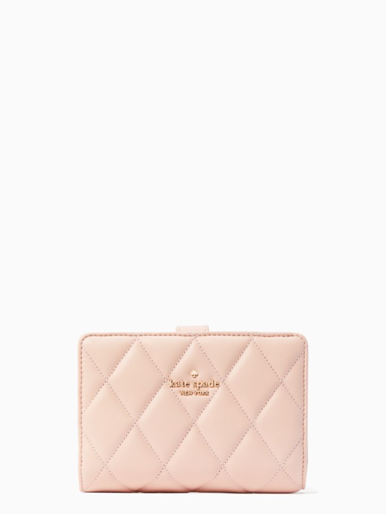 Kate Spade,キャリー スムース キルテッド レザー ミディアム コンパクト バイフォールド ウォレット,二つ折り・ミニ財布,コンクピンク