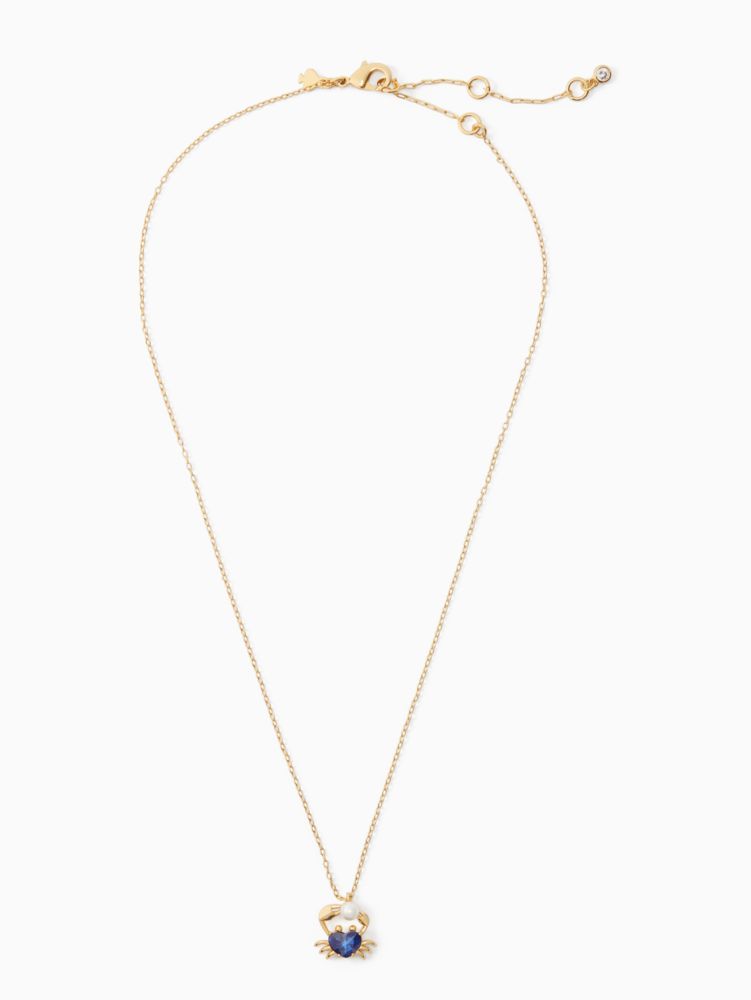 夏の胸元を爽やかに、そして愛らしく演出するクローアウトミニペンダント。カニの甲羅にハートシェイプのカラーストーンをあしらい、目は煌めくクリアガラス、そしてパールをキャッチしているような可愛いルックに仕上げました。サマードレスに合わせて、避暑地へのバカンスに出発して。