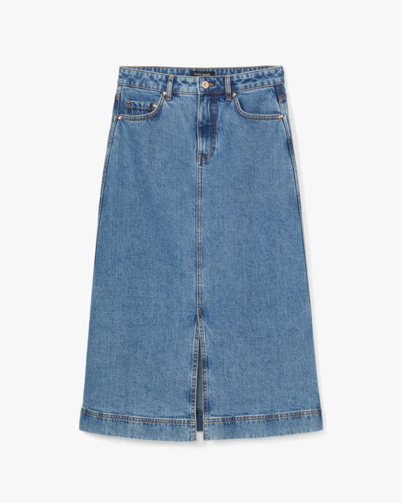 カジュアルスタイルに鮮度が必要?それなら、いつものデニムをこのミディスカートに履き替えて。独特なムラ感や色落ちを表現したコズミックウォッシュ加工を洗練のシルエットにあしらいました。Tシャツからブラウスまで、あらゆるトップスとスタイリングしやすい一枚です。