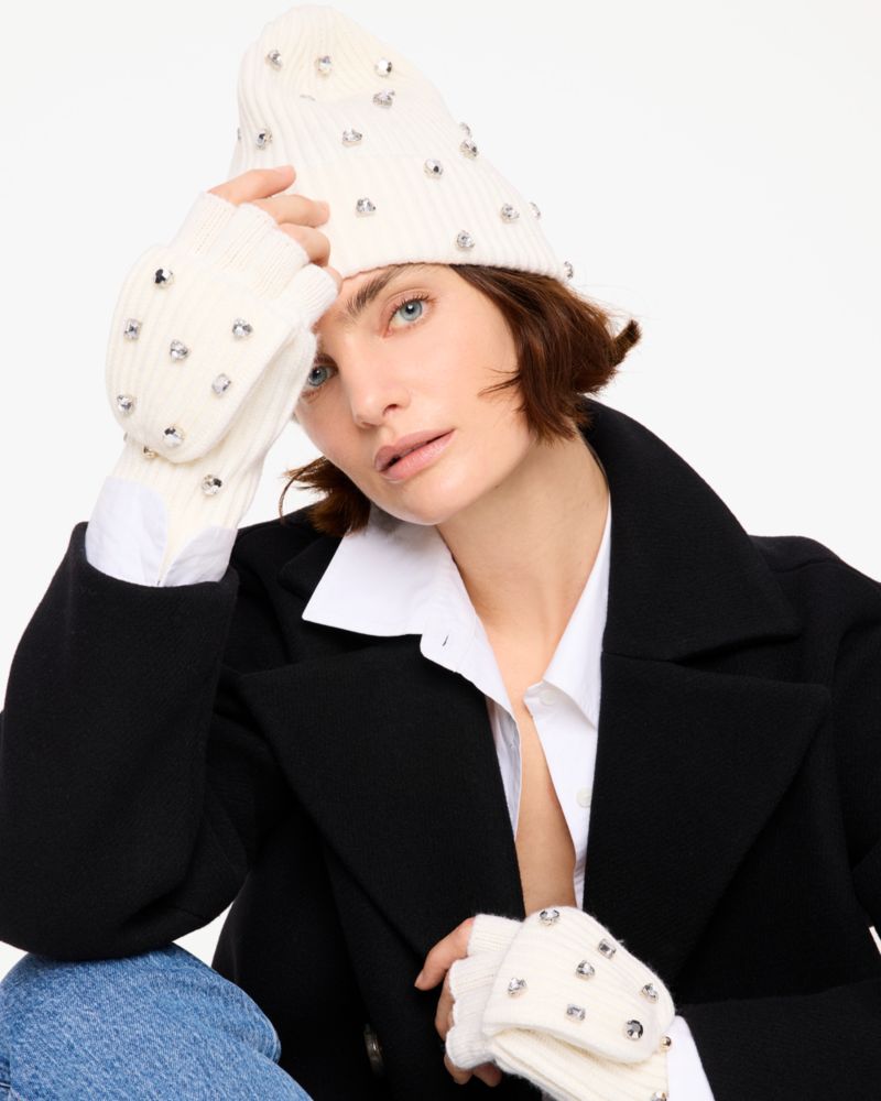 もっともっと輝きを!心地よいポップトップミトンにきらめく大粒のクリスタルをあしらい、冬のシーンをより盛り上げるスタイルへと昇華しました。暗くなりがちな季節のアクセント小物として活躍します。