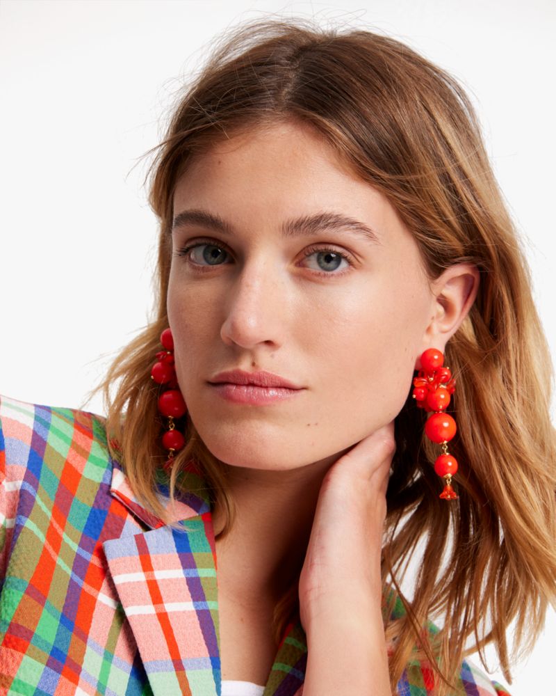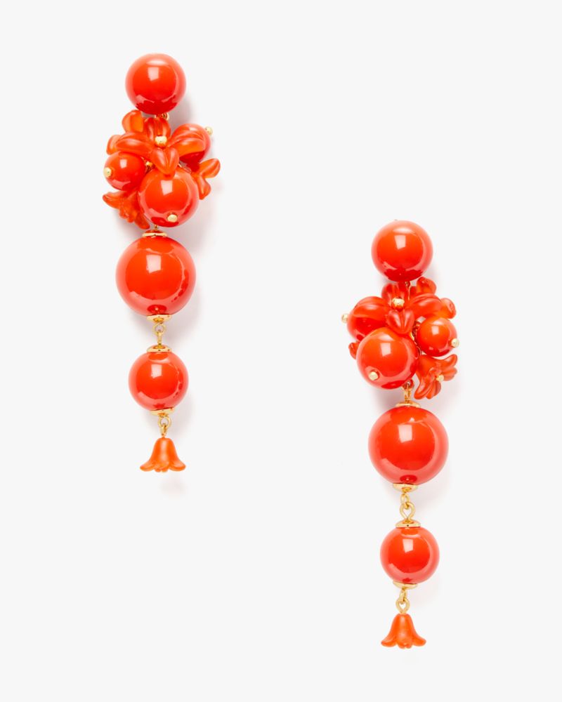 スタイリングの仕上げに加えれば、ヴィバレントな印象が生まれるアクリルパールを連ねたピアス。同系色のレジンとエナメルでフラワーを象り可憐なアクセントを添えています。一点投入でステートメントのルックが完成するシーズナルピース。