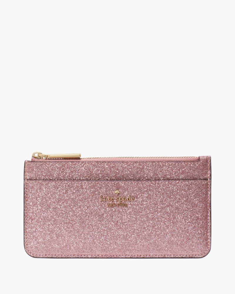 Kate Spade,グリマー グリッター ミックスド マテリアル ボックスド ラージ スリム カード ホルダー,カードケース・キーケース,ミトンピンク
