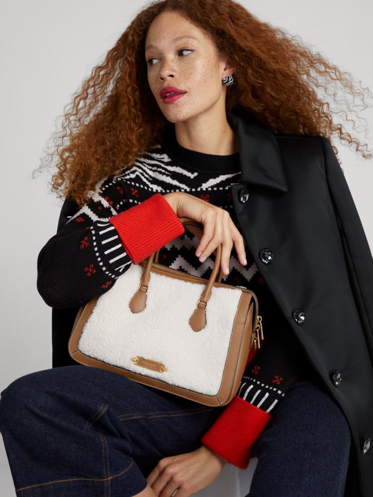 贅沢なメリノシアリングで仕上げた「グラマシー」のサッチェルで装いにウォーミーなアクセントを加えて。思わず触ってしまうふかふかの質感や、いつものスタイリングに加えるだけでリッチに映えるデザインなど愛すべき要素が満載の新作です。ハンドルの他にクロスボディストラップも付属したコンバーチブルタイプ。