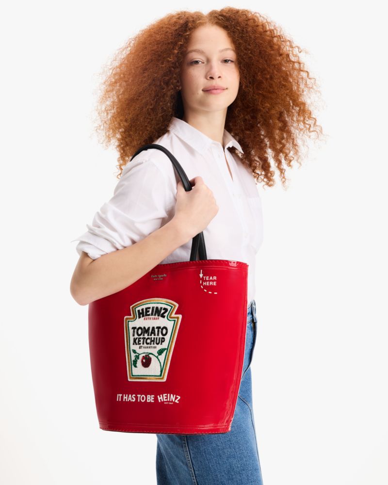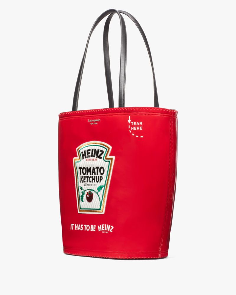 わたしたちの大好きなあの調味料が、フェイクパテントレザーを用いたトートになって登場。ボーナス:広々とした内装にポケットを装備しているので、使い切りサイズの小さいケチャップの持ち運びも安心。