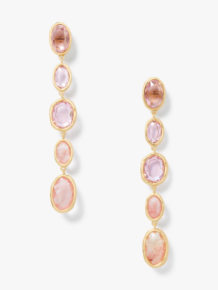 雫のように瑞々しく艶めくストーンを左右5粒づつあしらい、顔周りでたおやかに揺れるリニアピアスに仕上げました。縦のラインがすっきりとしたラインを生みつつ、柔らかな空気感を演出してくれる逸品です。