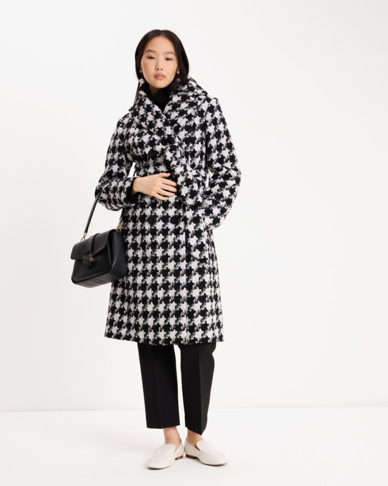 冷たい風を感じたら、大柄のハウンドトゥースをあしらった新作コートに身を包んで。クラシックな雰囲気を漂わせるダブルブレストで、ベルトを結んでもラフに羽織ってもサマになる1着。パンツにもスカートにも合わせやすい丈感です。