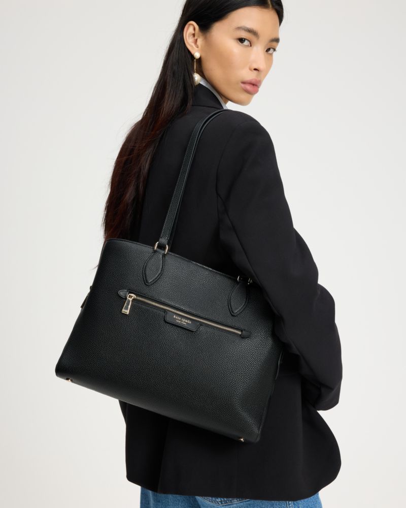 デイリーに扱いやすく丈夫なペブルレザーを用いた新作ワークトート。スマートなフォルムにはオフィスで(または無線LANのある場所ならどこだって)必要なあらゆるアイテムがすっきりと収納できます。メインコンパートメントとフロントに大きなポケットを装備しており、書類などの整頓にも役立ちます。