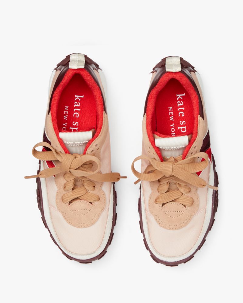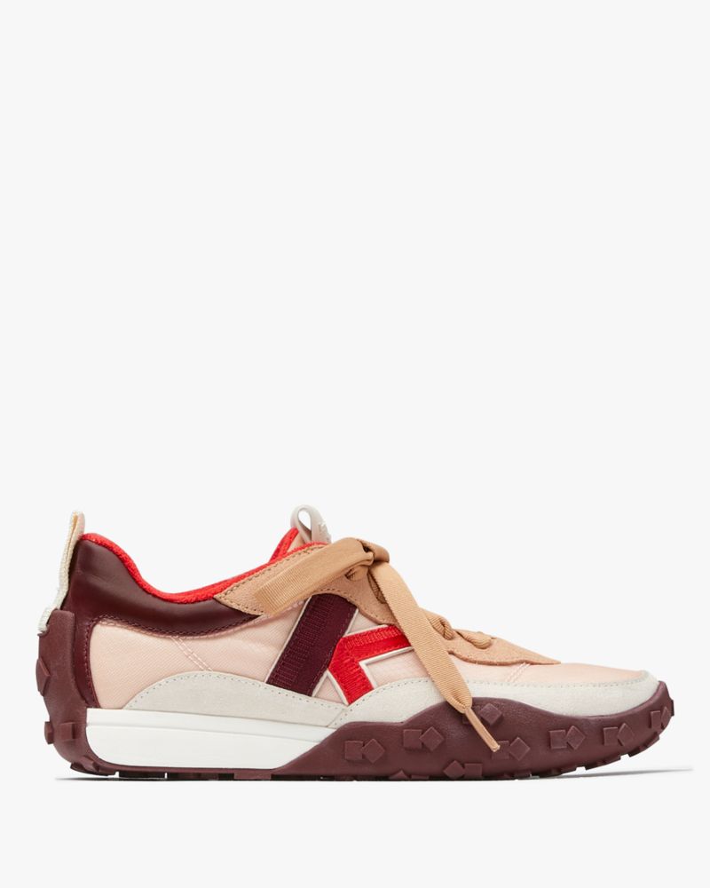 ステートメントとなるスニーカーなら、この大胆な一足を選んで。リップストップ素材をカラーブロックで施し、ブランドを象徴するKロゴをサイドにあしらいました。太めのシューレースがエレガントなアクセント。