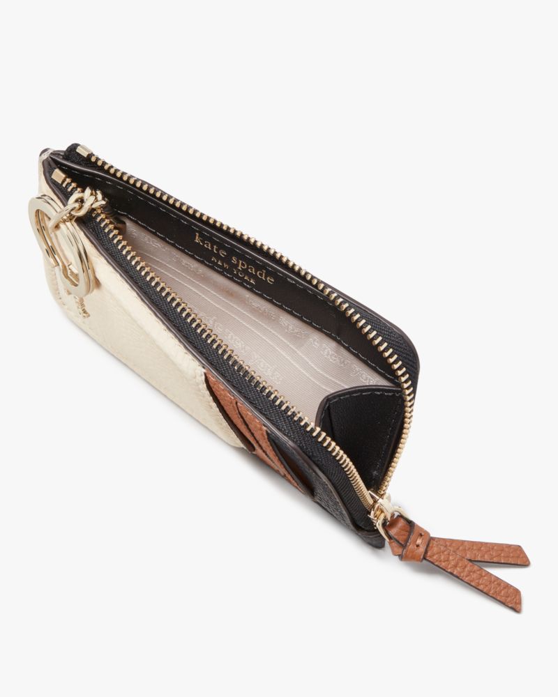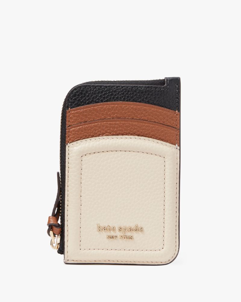 バッグでおなじみの「knott」シリーズにシックなカラーブロックをあしらったカードホルダーが登場。スリムな作りながら、メインコンパートメントの前後に複数のカードスロットを装備。スロットに施したカーブはエレガントな印象を与えるだけでなく、カードを取り出しやすくする実用性も兼ねています。日々をエレガントに紡ぎ、タイムレスに愛用できるパートナーをお探しの方にぴったりのひと品です。