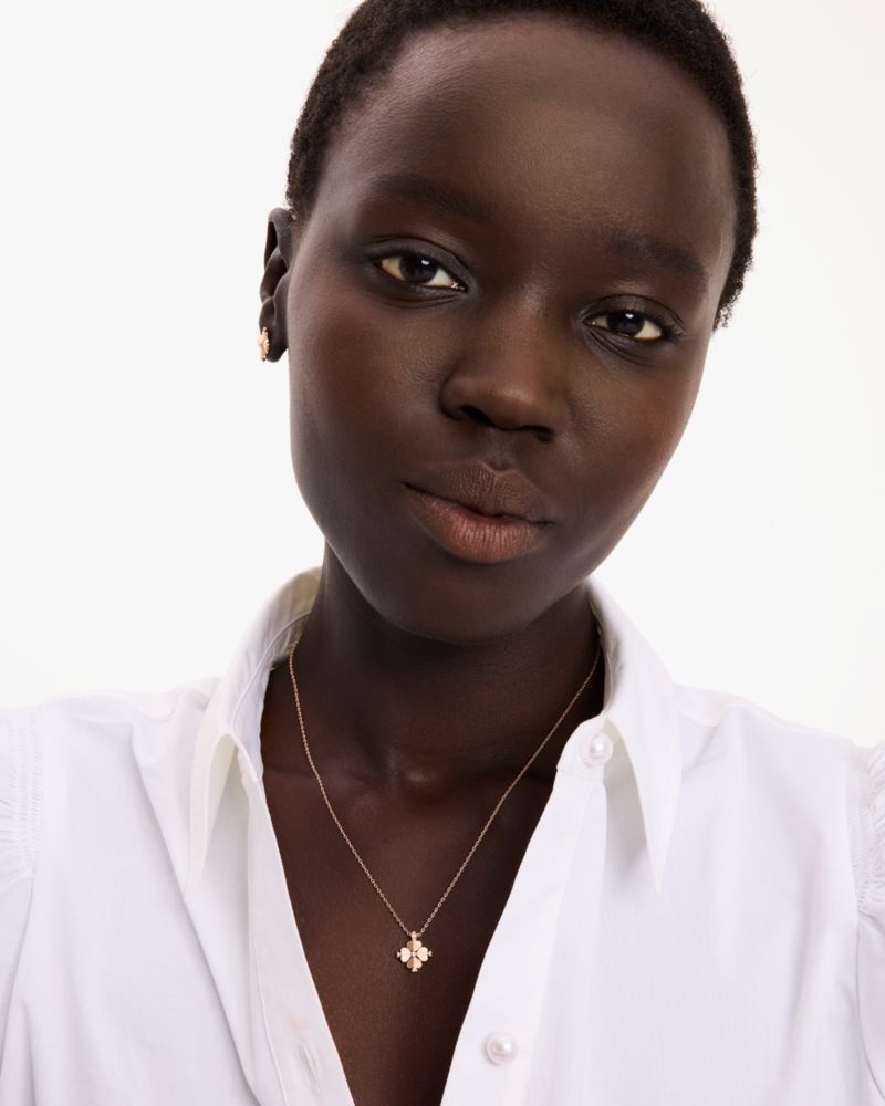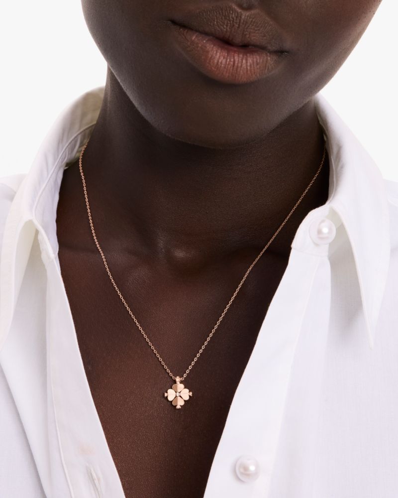 象徴的なスペードフラワーのモチーフを生き生きとした魅力が輝くペンダントへと再構築。スペードに施した巧みなカッティングが光を捉え、エレガントな輝きで胸元を明るく照らします。