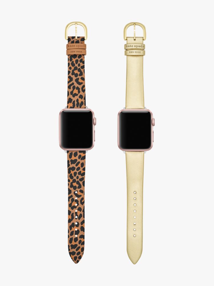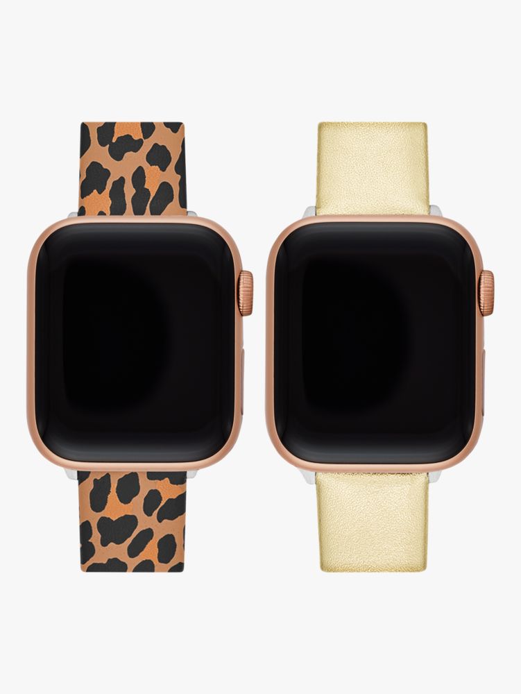 手元のルックのイメージチェンジを楽しむなら、このセットを手に入れて。Apple Watch®のバンド2本と、交換可能な38mmのクラシックウォッチヘッドがセットになっています。レオパードプリントとゴールドトーンのメタリックレザーバンドは、38mm、40mm、41mmのApple Watch®のスタイルにフィットします。
