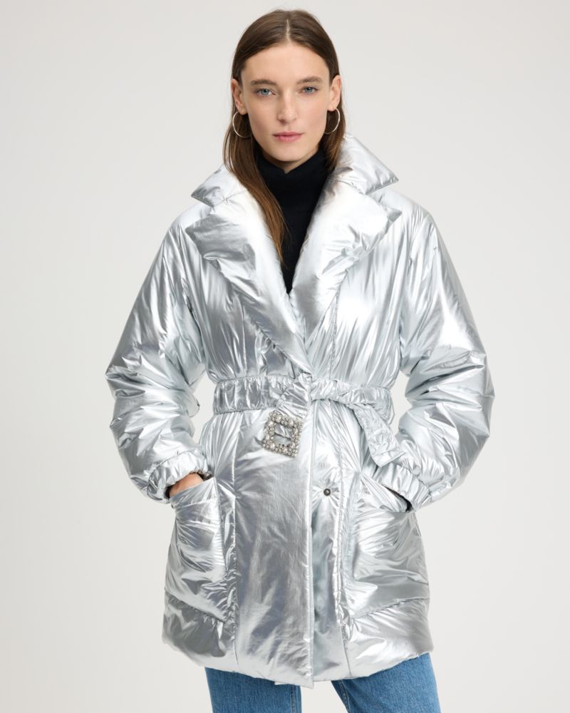 Kate Spade,メタリック ナイロン ジャケット,アウター,シルバー