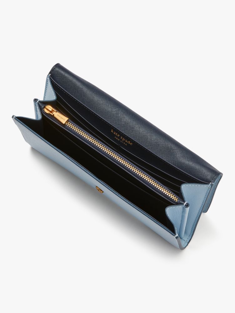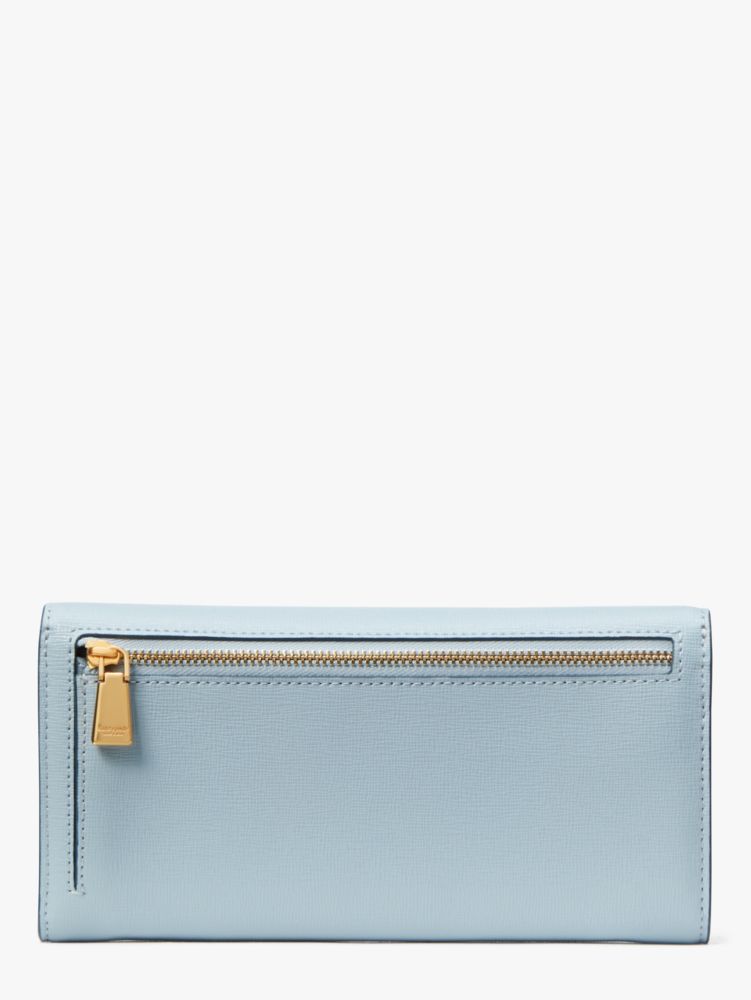 これからの毎日を共に過ごす、あなたの新パートナーをご紹介。傷がつきにくく美しい表面感を長く保つサフィアーノレザーに上品なカラーをあしらい、贅沢なルックを完成させた「モーガン」のコンチネンタルウォレット。マチが大きく広がるので収納力があり、内側と外側それぞれに装備したジッパーつきコインケースによって用途に応じた整理整頓が行えます。