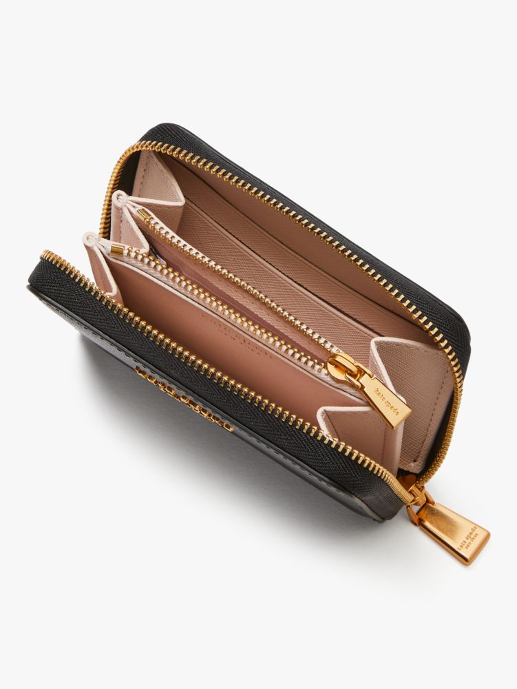 サフィアーノレザー ジップアラウンドクロージャー付きカードケース カードスロット4 ジップ付きコインポーチ 外側:スリップポケット ピンマウントロゴ