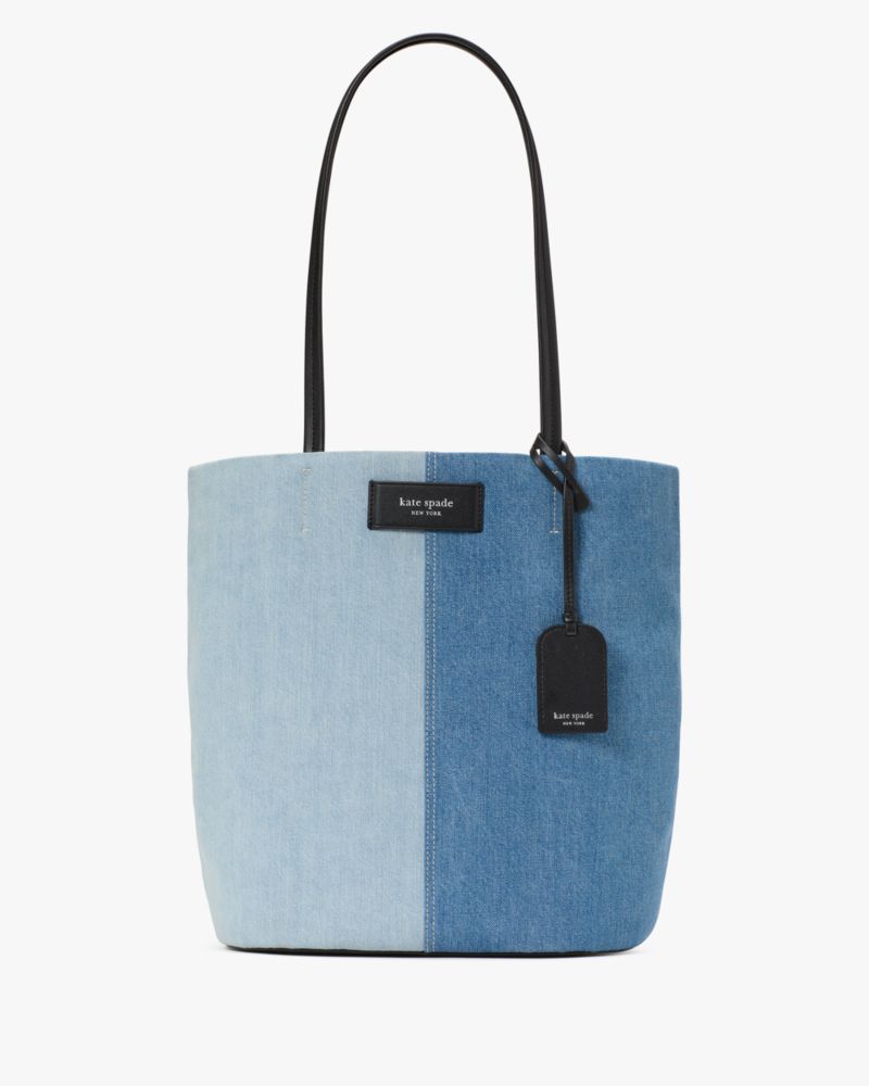 日々のあらゆる必需品が収まるカラーブロックの新作デニム トート。アフリカのアバヒズィ・ルワンダの女性職人200人との“on purpose”コレクションの一環として登場した本アイテムは、従業員たちによって所有されるB Corp認証サプライヤー(社会・環境に配慮している会社に与えられる認証)によって製造されています。この活動はフルタイムの雇用を生み出し、従業員のメンタルヘルスと日々の充実をサポートし、その周りのコミュニティ20,000人が生活を再形成しています。