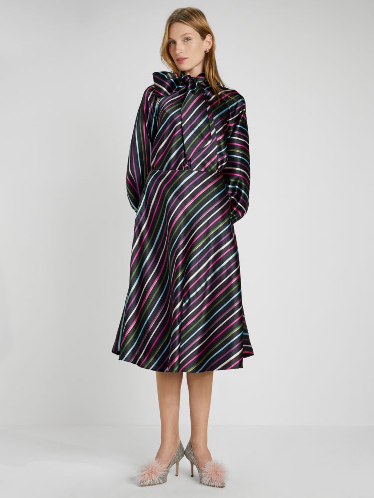 さあ、パーティーの始まり!カラフルなキャンディストライプとほのかな煌きを添えたミディスカートを纏って、周囲からの褒め言葉を一晩中楽しんで。