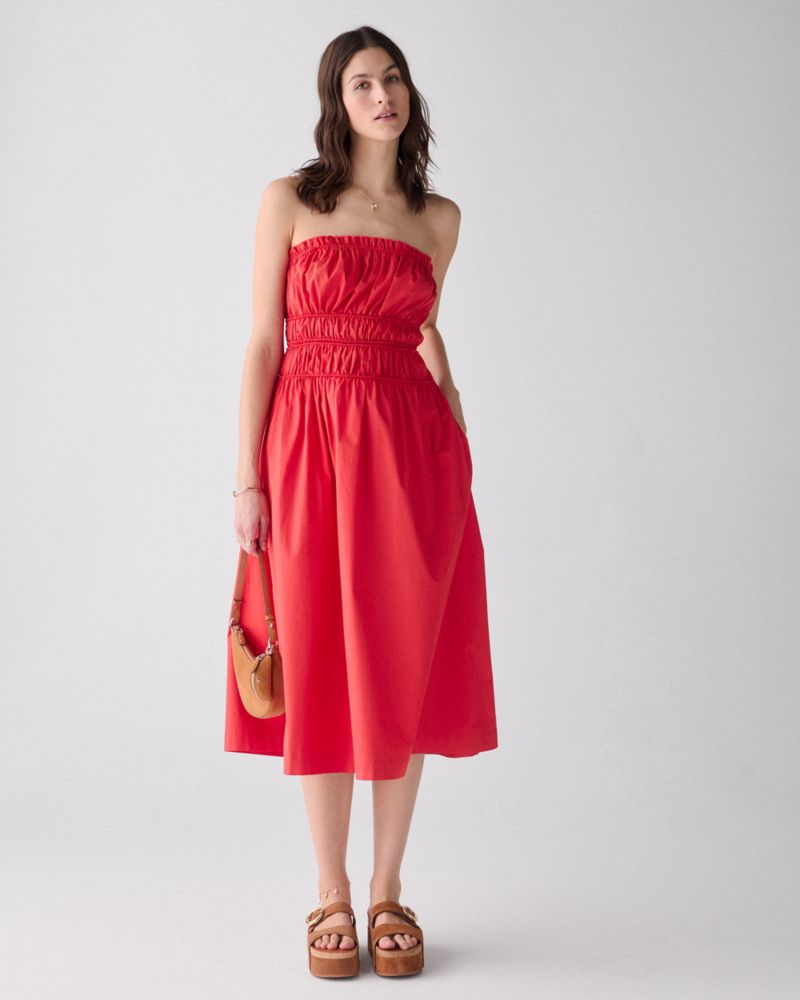 スモックド ストラップレス ミディ ドレス