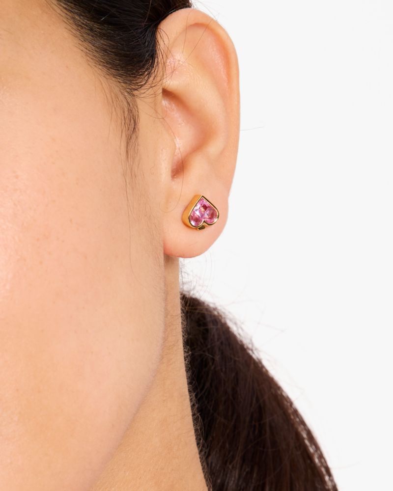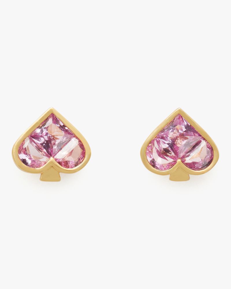 ブランドを象徴するスペードロゴをシックなスタッズピアスへと再構築。3粒のクリスタルを巧みな角度でセッティングし、スペードが最も美しく輝くルックを演出しています。