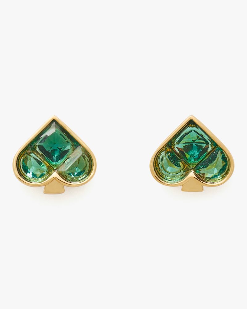 ブランドを象徴するスペードロゴをシックなスタッズピアスへと再構築。3粒のクリスタルを巧みな角度でセッティングし、スペードが最も美しく輝くルックを演出しています。
