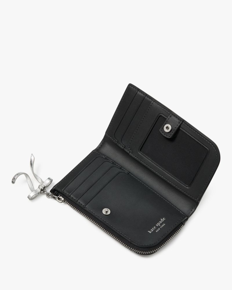 ミャオ!とびきりファビュラスな私たちの新しい猫のフレンズ“ポーリーナ”をあしらったバイフォールドウォレット。ファスナーにあしらったメタリックのボウがアクセント。バッグから取り出すたびに、その愛らしさに心が弾みそう。