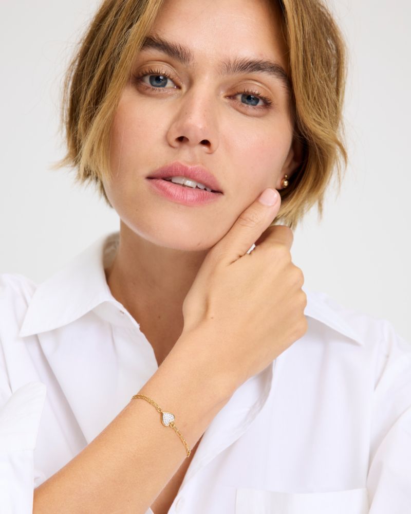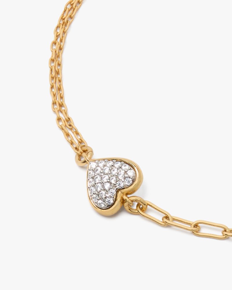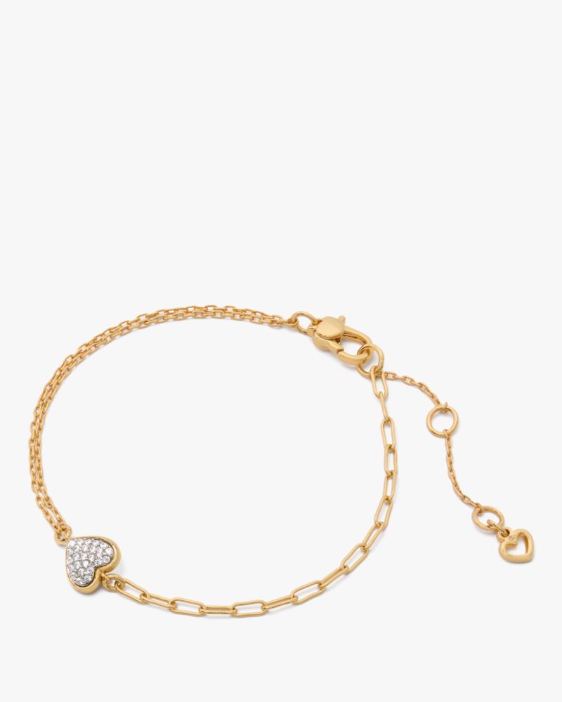 たっぷりのパヴェクリスタルで満たしたハートをあしらったラインブレスレットで、特別なあの人や自分に惜しみない愛を注いで。身に着けやすい繊細なチェーンと、愛らしいデザインが織りなす輝きが日々を彩ります。